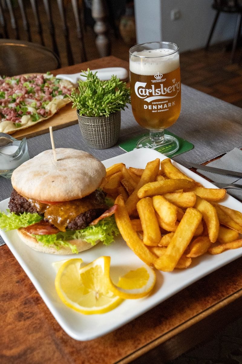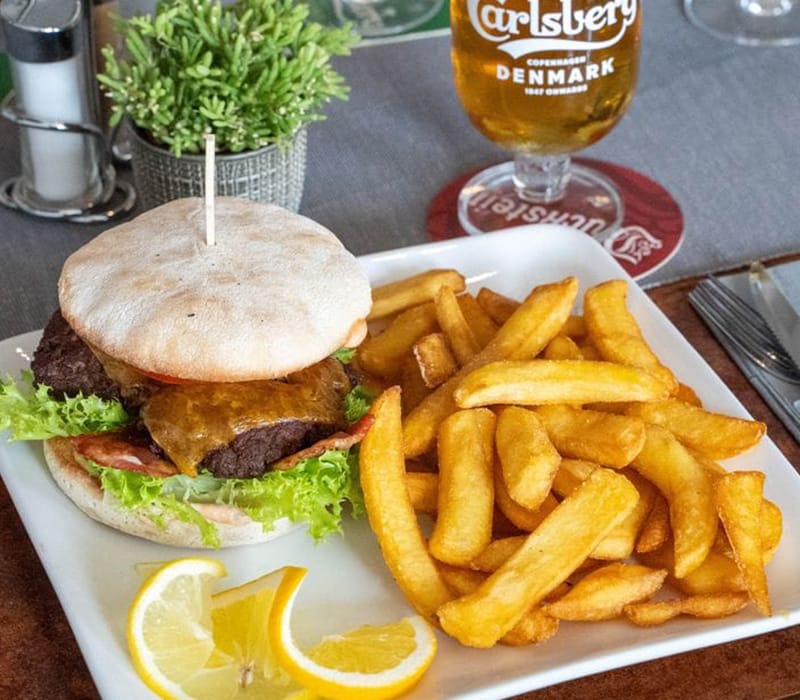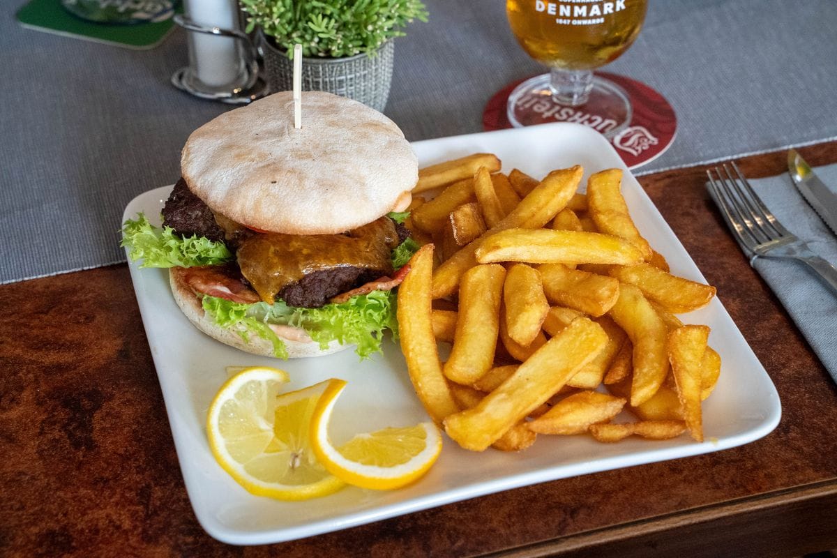 Der Sulsdorfer Burger ist ein echtes Highlight: 200 g hausgemachtes Bio-Rindfleisch, saftig gegrillt und belegt mit Cheddar, knusprigem Bacon, frischem Salat, Tomate, Gurke und Zwiebel. Abgerundet wird das Ganze mit unserer hausgemachten Sauce – würzig, cremig und einfach lecker. Dazu gibt’s goldgelbe Steakhouse-Pommes. Herzhaft, ehrlich und mit jeder Menge Inselcharme.
